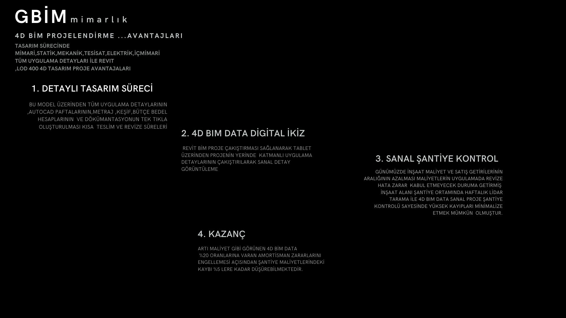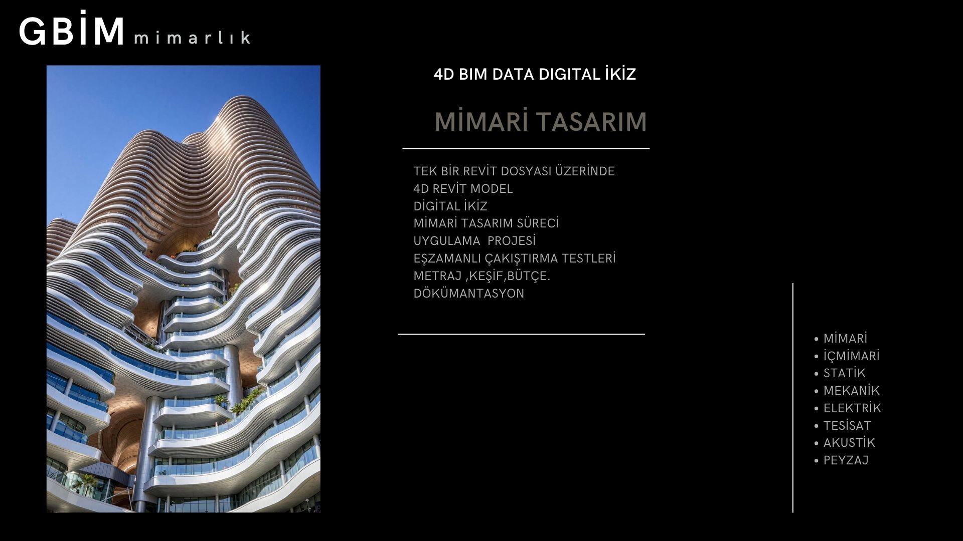GBİM Design Mimarlık ve İnşaat, Villalar,Konutlar,Toplu konutlar, lüks konutlar, oteller, alışveriş merkezleri, hastaneler, okullar, kütüphaneler ve askeri binalar gibi geniş yelpazedeki üstyapı inşaat projelerinde tasarım, mühendislik ve inşaat hizmetleri sunmaktadır.