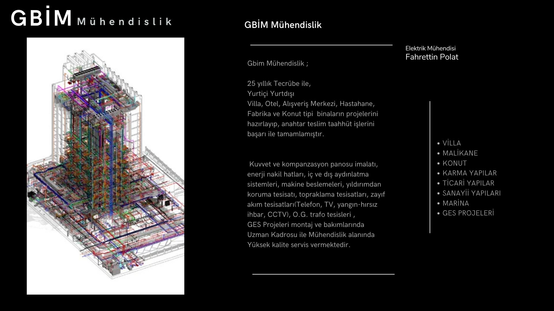 GBIM Design Mimarlık ve İnşaat,, Türkiye’nin önde gelen Sanayi tesisleri için çeşitli büyüklük ve kapsamdaki endüstriyel projelerin yanı sıra, pompa istasyonları, ısı santralleri ,Tersaneler,Marina Projeleri ve çelik konstrüksiyon yapılardan oluşan münferit projelerin Tasarımlarında da bulunmuştur.